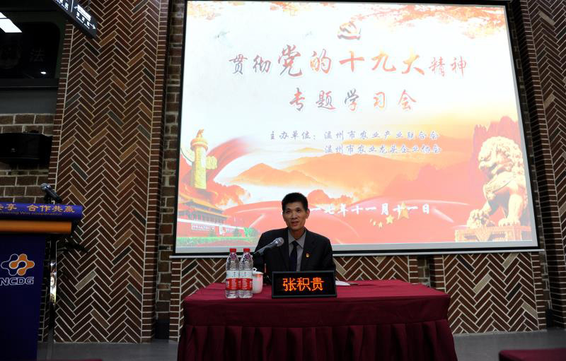 2017-11-1311月11日下午,由溫州市農(nóng)業(yè)產(chǎn)業(yè)聯(lián)合會(huì)、溫州市農(nóng)業(yè)龍頭企業(yè)協(xié)會(huì)聯(lián)合主辦的“貫徹黨的十九大精神專題學(xué)習(xí)會(huì)”在龍灣區(qū)(高新區(qū))黨群服務(wù)中心召開,會(huì)議特邀黨的十九大代表張積貴作輔導(dǎo)報(bào)告,原野農(nóng)業(yè)集團(tuán)黨支部積極指派黨員參加學(xué)習(xí)。