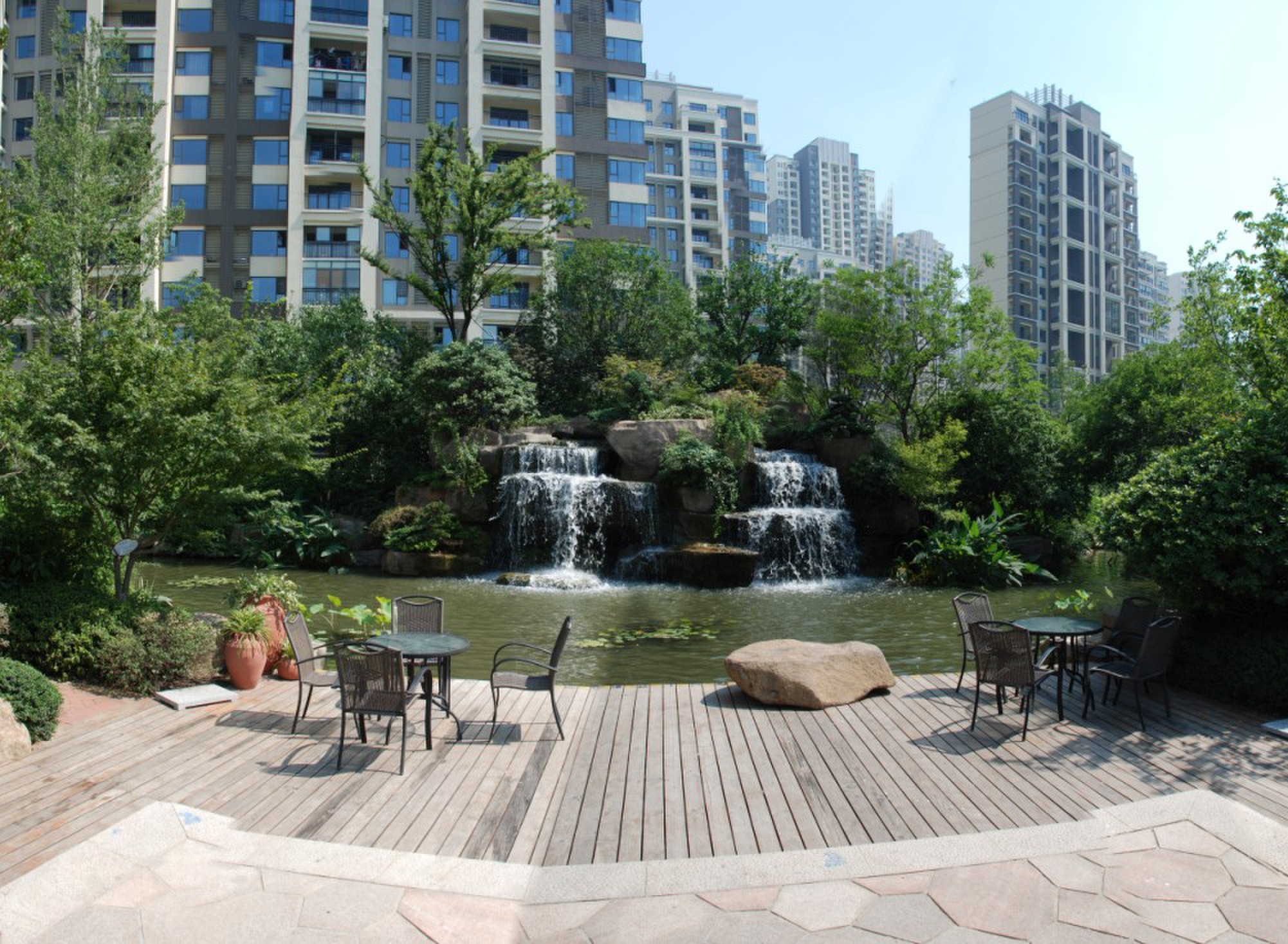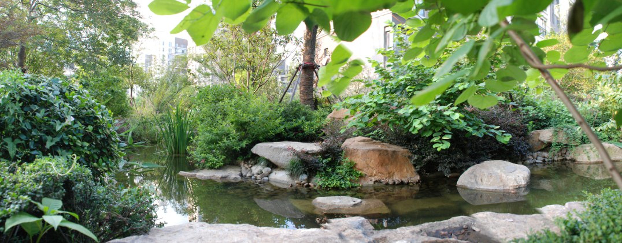 本工程施工總面積約35000㎡,其中綠化面積29772㎡,自然水系約370㎡,景石點(diǎn)綴2000噸。工程還包括休閑座椅、花缽、小橋、弧形廊架、木平臺、八角亭、四角亭、水瀑等景觀。2012年5月29日,工程順利通過驗(yàn)收。