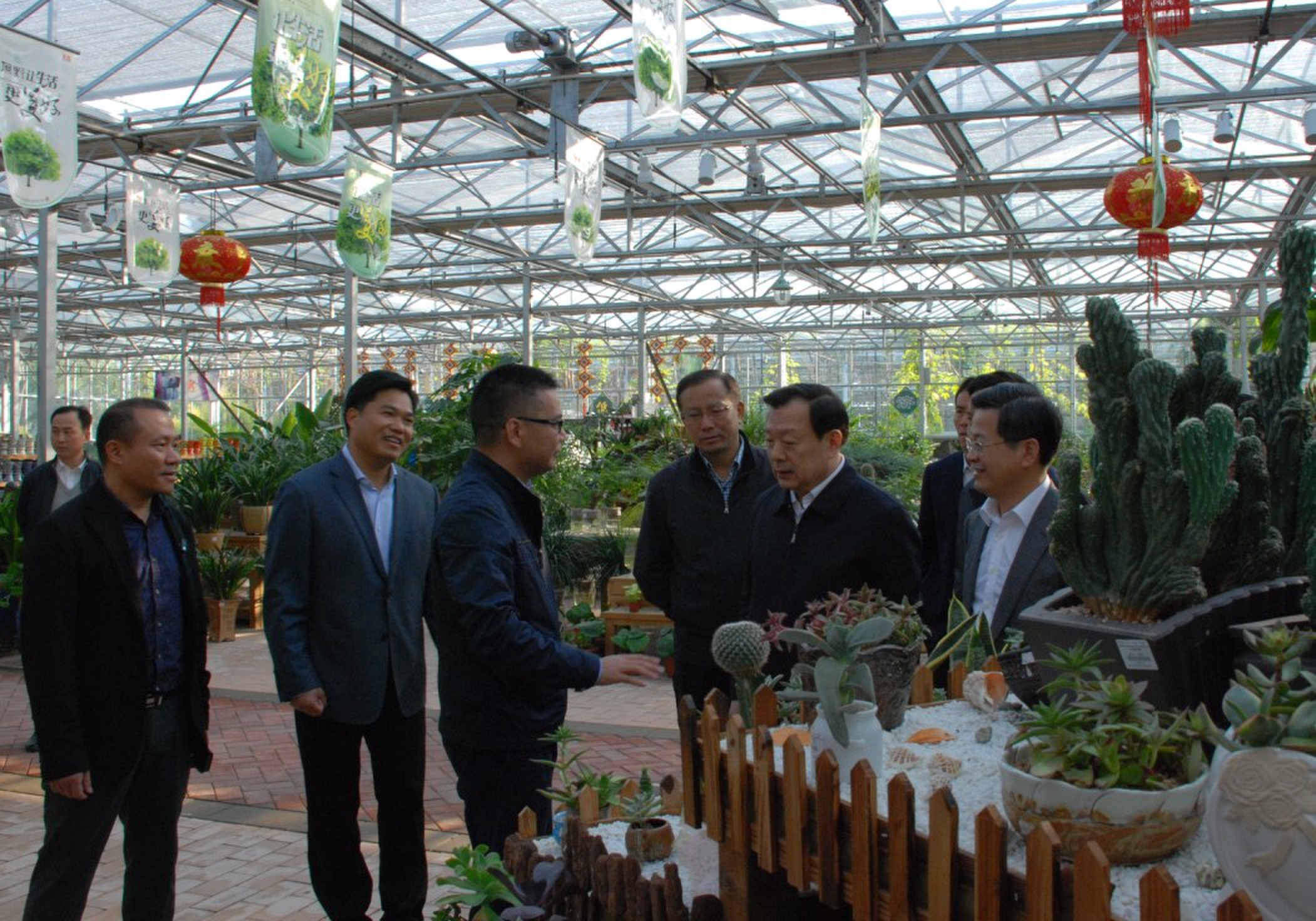 下午2點(diǎn)50分許,夏書記首先來到盆景園,對(duì)身邊陪同的李星濤說:“你這里我越看越喜歡”。隨后,在原野花卉超市里,三百多個(gè)自主研發(fā)的花卉品種吸引了夏書記的目光,夏書記停下腳步仔細(xì)詢問起來,李星濤一一做了介紹。當(dāng)夏書記看到樹屋和周邊立體配種各種苗木和中藥材時(shí),說“太有創(chuàng)意了,太好了”。原野香草園是原生態(tài)、古樸簡(jiǎn)潔、個(gè)性化的休閑茶歇,贏得了夏書記“很有藝術(shù)品位”的贊許。在原野立體無土蔬菜栽培專區(qū),夏書記對(duì)原野公司實(shí)施高效、增產(chǎn)、無污染的生產(chǎn)方式給與肯定,并叮囑陪同的市縣領(lǐng)導(dǎo)要大力扶持生態(tài)產(chǎn)業(yè)。