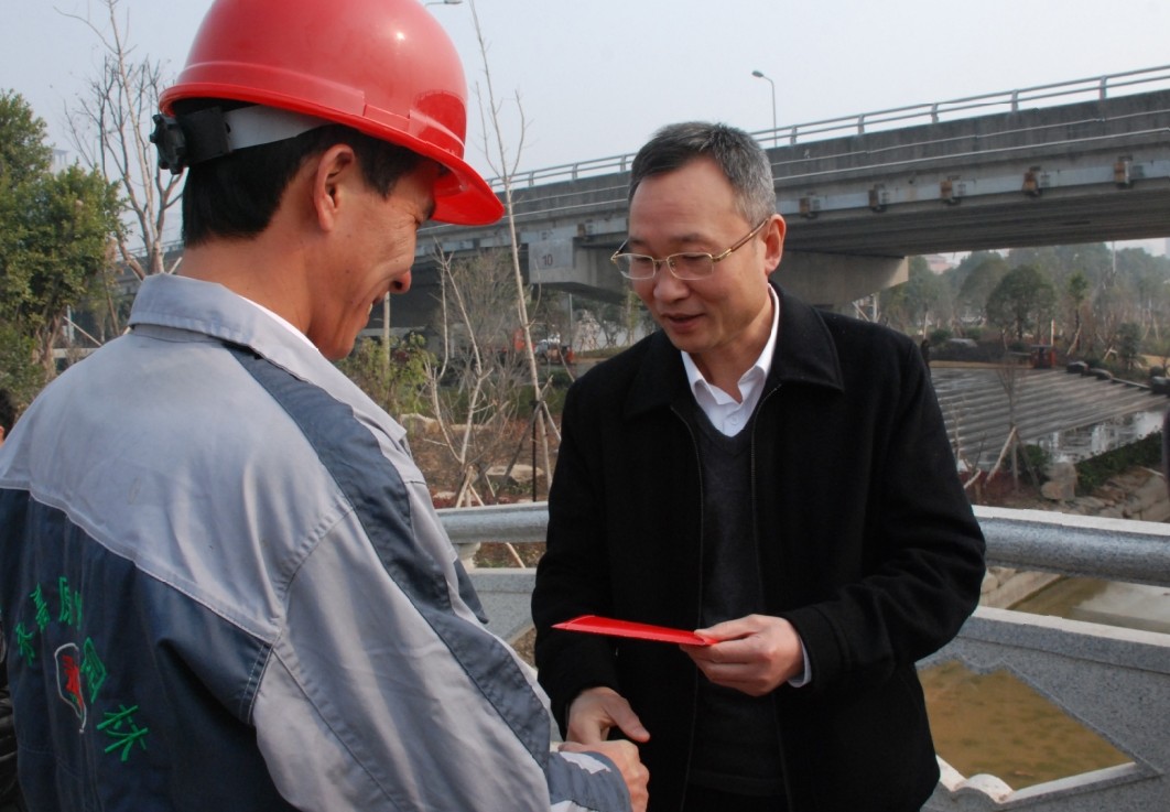 元月26日上午,婁紹光縣長來到甌北西段標(biāo)準(zhǔn)堤景觀綠化工程施工現(xiàn)場,慰問工程項目的現(xiàn)場工作人員,并送來了慰問金??h人大與發(fā)改局、總工會等部門的領(lǐng)導(dǎo)隨同慰問。