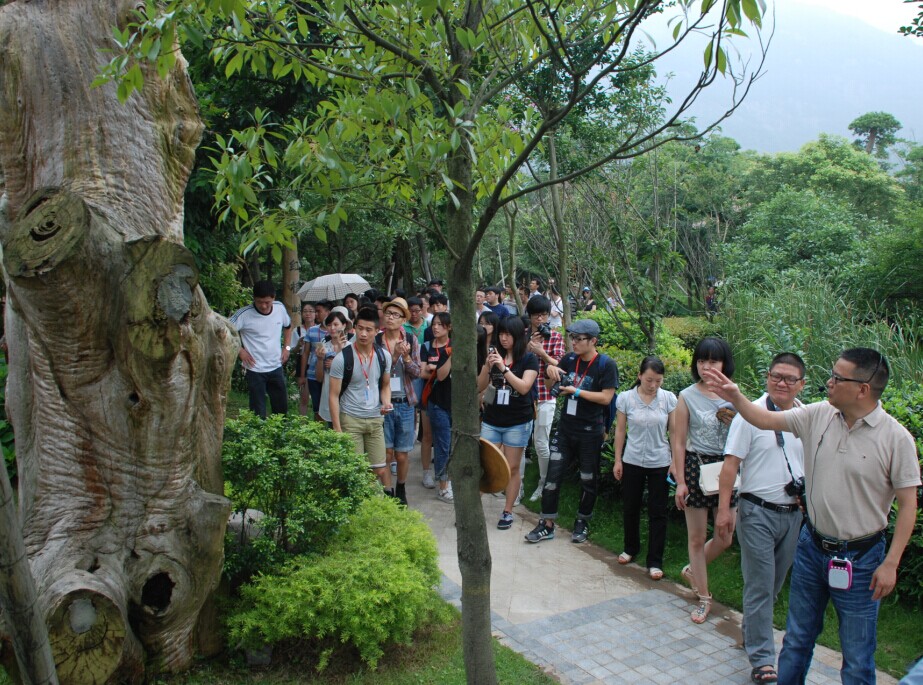 首屆兩岸大學生基于溫州文化元素的低碳設計工坊活動組織學生到永嘉原野園林工程有限公司進行參觀考察。 楊冰杰 攝