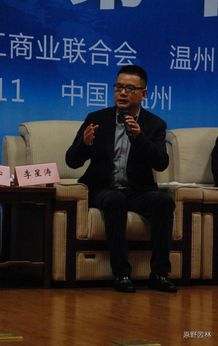作為上臺(tái)交流的嘉賓永嘉縣原野園林工程有限公司董事長(zhǎng)李星濤(左四),借用名人名言回答什么是責(zé)任:“松下幸之助講過(guò)一句話,企業(yè)的發(fā)展和存在的價(jià)值,就是為社會(huì)增加福祉。
