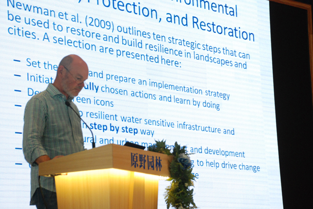 Dr.Peter Breen演講的主題是關(guān)于“生態(tài)型景觀為城市提供生態(tài)系統(tǒng)的服務(wù)功能”。