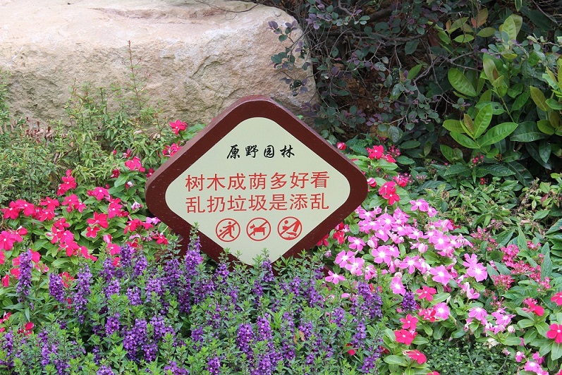 (圖為花叢警示牌)