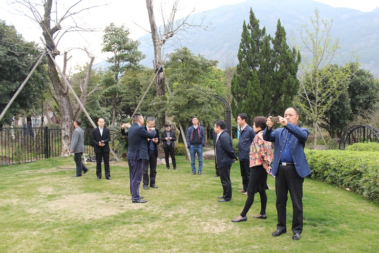 李星濤董事長(zhǎng)為考察團(tuán)詳細(xì)介紹了農(nóng)莊的發(fā)展以及涉及領(lǐng)域,原野目前擁有7個(gè)苗圃基地,共2000苗種植面積,并設(shè)有科研部門,積極響應(yīng)省政府“十三五”期間提出的“新植1億株珍貴樹,為子孫后代留財(cái)富”的口號(hào),研發(fā)南方紅豆杉、雁蕩潤(rùn)楠、江南油杉、黃花梨等珍稀、瀕危樹種,種植了100來(lái)萬(wàn)株珍貴樹木。省水利廳廳長(zhǎng)陳龍,對(duì)于原野重視自然環(huán)境保護(hù),積極配合”五水共治“的研發(fā)治理工作,表示了高度肯定。原野種植研究紅楠,利用紅楠樹可吸收重金屬的特性,消滅劣Ⅴ類水,改善被電鍍、化工污染的土地,將淤泥變?yōu)榱继?。此外,原野還與浙江省林學(xué)院開展合作,建有800多畝的基地,研究鐵皮石斛豐產(chǎn)栽培技術(shù),目前大棚中種植了26種鐵皮石斛,方便日常觀察生長(zhǎng)情況。