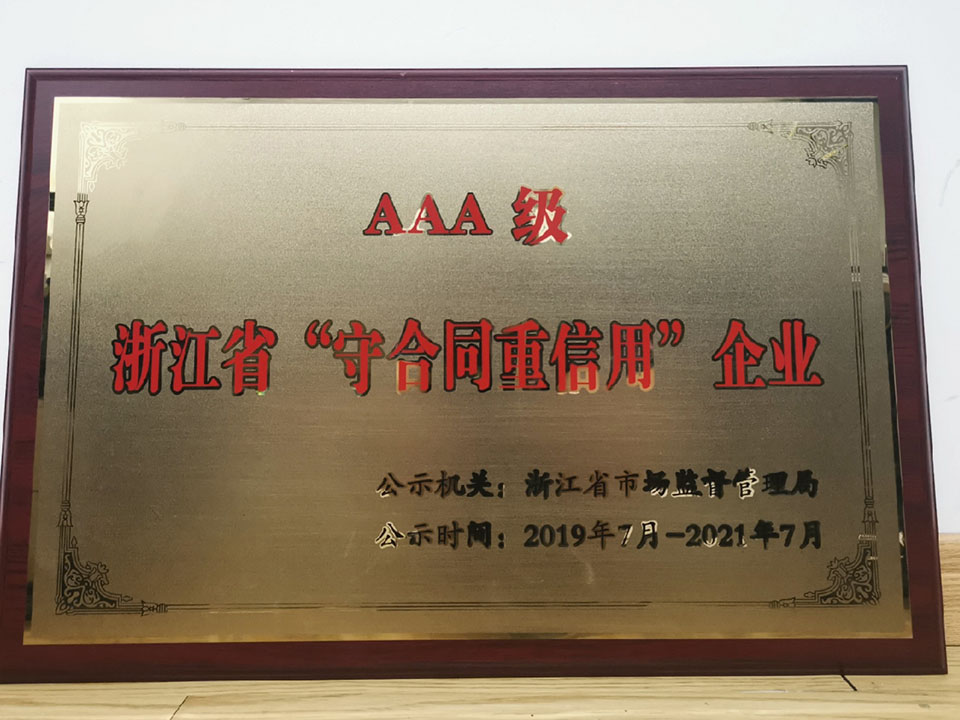 原野再次榮獲浙江省AAA級(jí)“守合同重信用”企業(yè)稱號(hào)