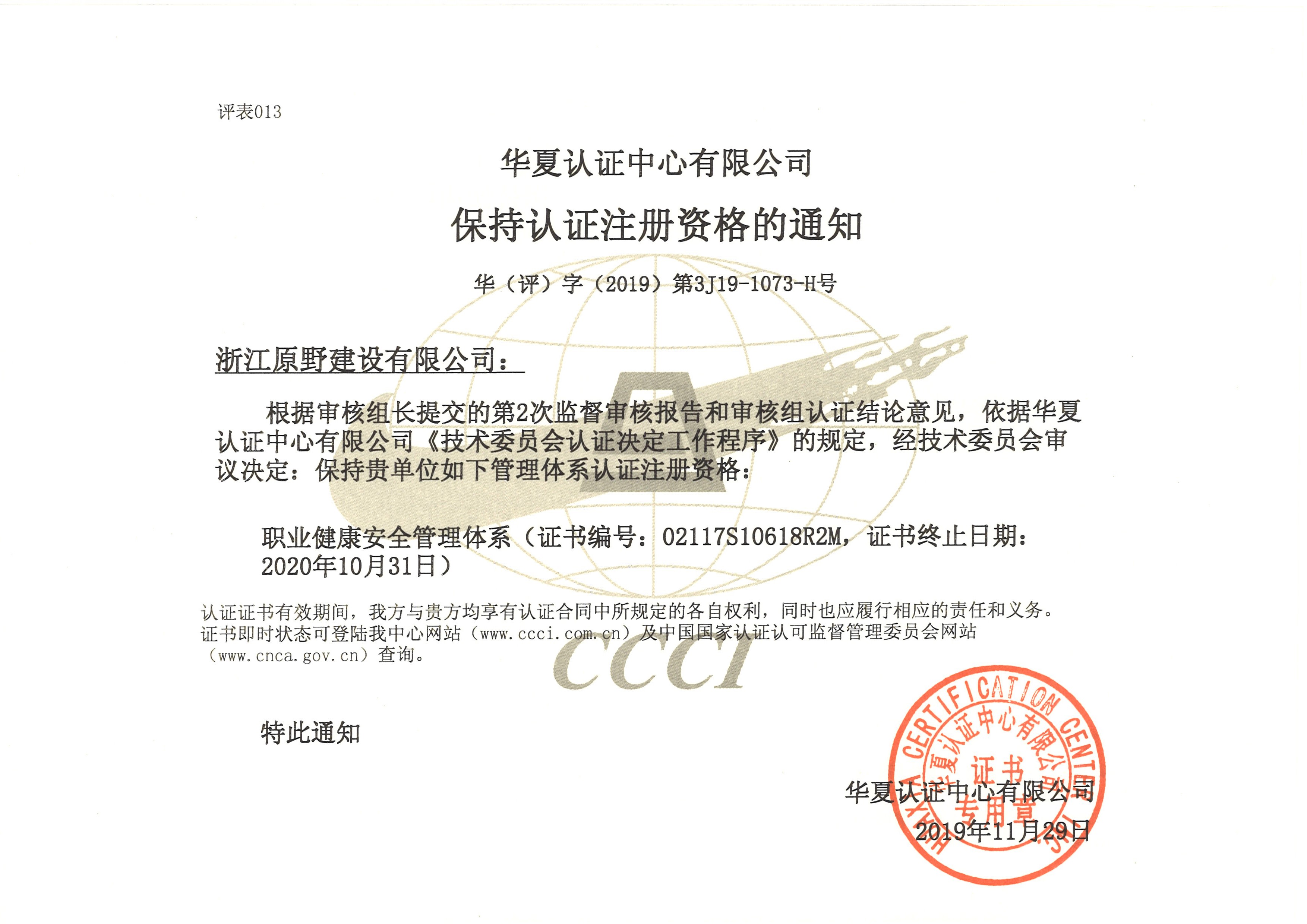 2019年11月,原野集團開展ISO三體系復(fù)審工作,華夏認證中心有限公司五位專家老師經(jīng)過為期三天的審核認證工作和“原野人”的配合與努力,順利頒布認證資格證書。