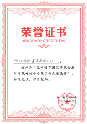 原野集團(tuán)榮獲:“北京世界園藝博覽會浙江省花卉協(xié)會會展工作先進(jìn)集體“”榮譽(yù)