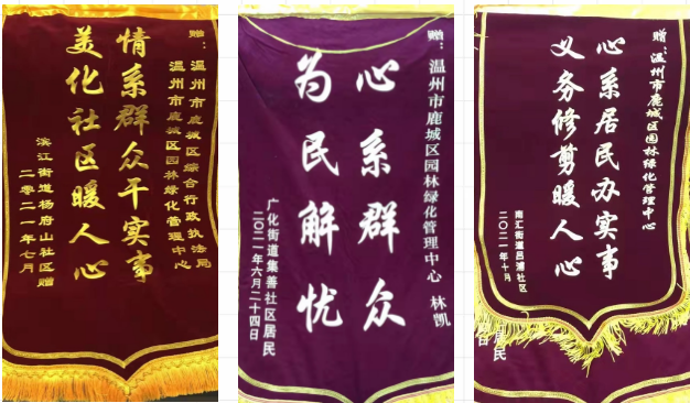 近日,鹿城區(qū)楊府山社區(qū)、集善社區(qū)、呂浦社區(qū)給鹿城區(qū)綜合行政執(zhí)法局與園林綠化管理中心送去錦旗。這是社區(qū)居民對綜合行政執(zhí)法局與園林綠化管理中心五個(gè)多月來的貼心服務(wù),所表達(dá)的感謝與肯定。