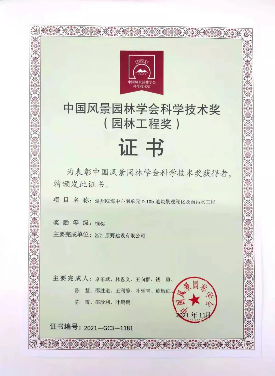 喜報(bào)|恭喜原野榮獲中國(guó)風(fēng)景園林學(xué)會(huì)科學(xué)技術(shù)獎(jiǎng)