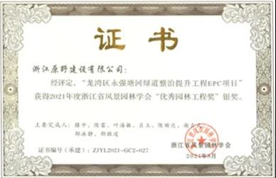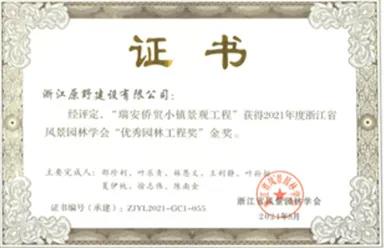 日前,浙江原野建設(shè)有限公司收到浙江省風(fēng)景園林學(xué)會頒發(fā)的優(yōu)秀園林工程獎證書。