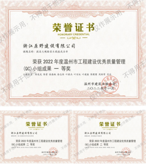 2023-04-21日前,溫州市建筑業(yè)聯(lián)合會組織召開2023年溫州市工程建設(shè)QC成果交流學(xué)習(xí)會,浙江原野建設(shè)有限公司共獲得7個獎項。