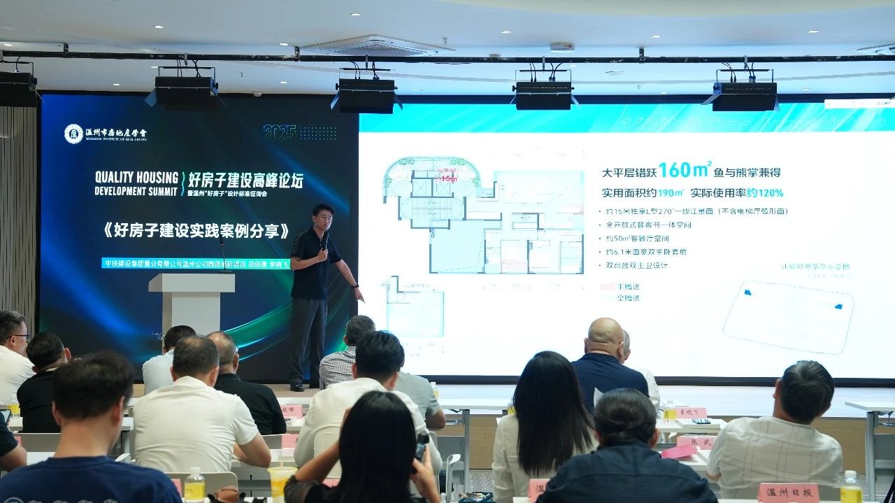 2025-08-252025年8月23日下午,由溫州市房地產(chǎn)學(xué)會主辦的“溫州好房子建設(shè)高峰論壇暨設(shè)計標(biāo)準(zhǔn)征詢會”在溫州隆重舉行。本次論壇匯聚了溫州房地產(chǎn)產(chǎn)業(yè)鏈上下游的30余家商協(xié)會會長,以及來自企業(yè)、學(xué)界、媒體和市民代表百余人,圍繞“安全、舒適、綠色、智慧”四大核心維度,聚焦“什么是好房子、如何建好房子”,旨在凝聚政府、企業(yè)、學(xué)界與公眾的共識,系統(tǒng)構(gòu)建具有溫州特色的好房子建設(shè)標(biāo)準(zhǔn)體系。