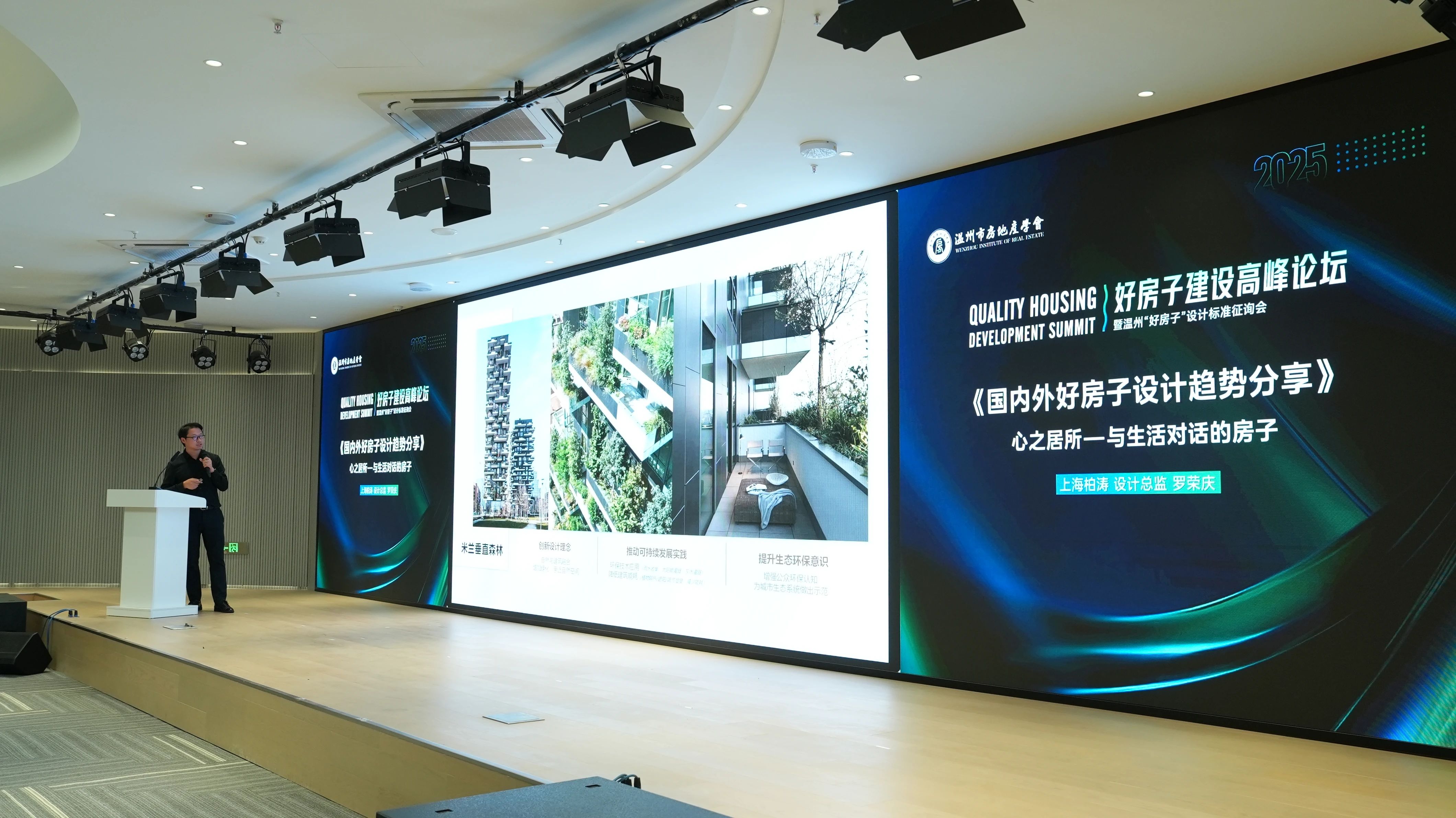上海柏濤設(shè)計總監(jiān)羅榮慶以“心之所居:與生活對話的房子”為主題,分享國內(nèi)外好房子設(shè)計趨勢與實踐案例。他從米蘭垂直森林、紐約565公寓、新加坡達(dá)士嶺組屋、日本北青山公寓等國際案例出發(fā),提煉出可持續(xù)、個性化、智能化、酒店化四大設(shè)計方向。