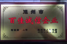 原野公司再獲溫州市第二屆百佳誠(chéng)信企業(yè)稱號(hào) -