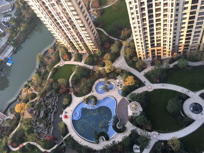 甌海中心單元E-07a、b地塊景觀工程包括鋪裝、道路、跌水景、景觀廊架、景亭、景觀橋、景墻、中央庭院泳池、休閑構架、疊石流瀑、欄桿、木平臺、休閑角、機動車坡道、非機動車坡道、花缽、景觀燈、鐵藝大門、水系、雕塑、臺階、花壇、樹池、座凳等室外工程。