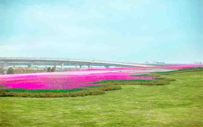 綠化部分包括喬木、灌木、地被、種植土回填及地形整理等;亮化部分包括管線預埋、燈具安裝,主要亮點為設置花燈呈現花海燈光秀,配合綠化堆坡造型,整體呈現壯觀、絢麗的燈光盛宴。